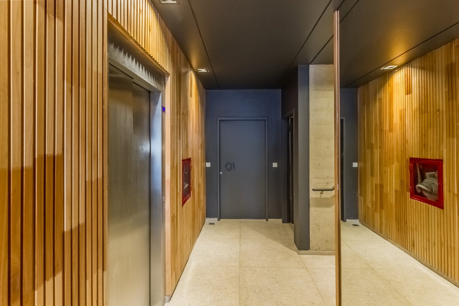 * Losas y tabiques en hormigón armado a la vista.