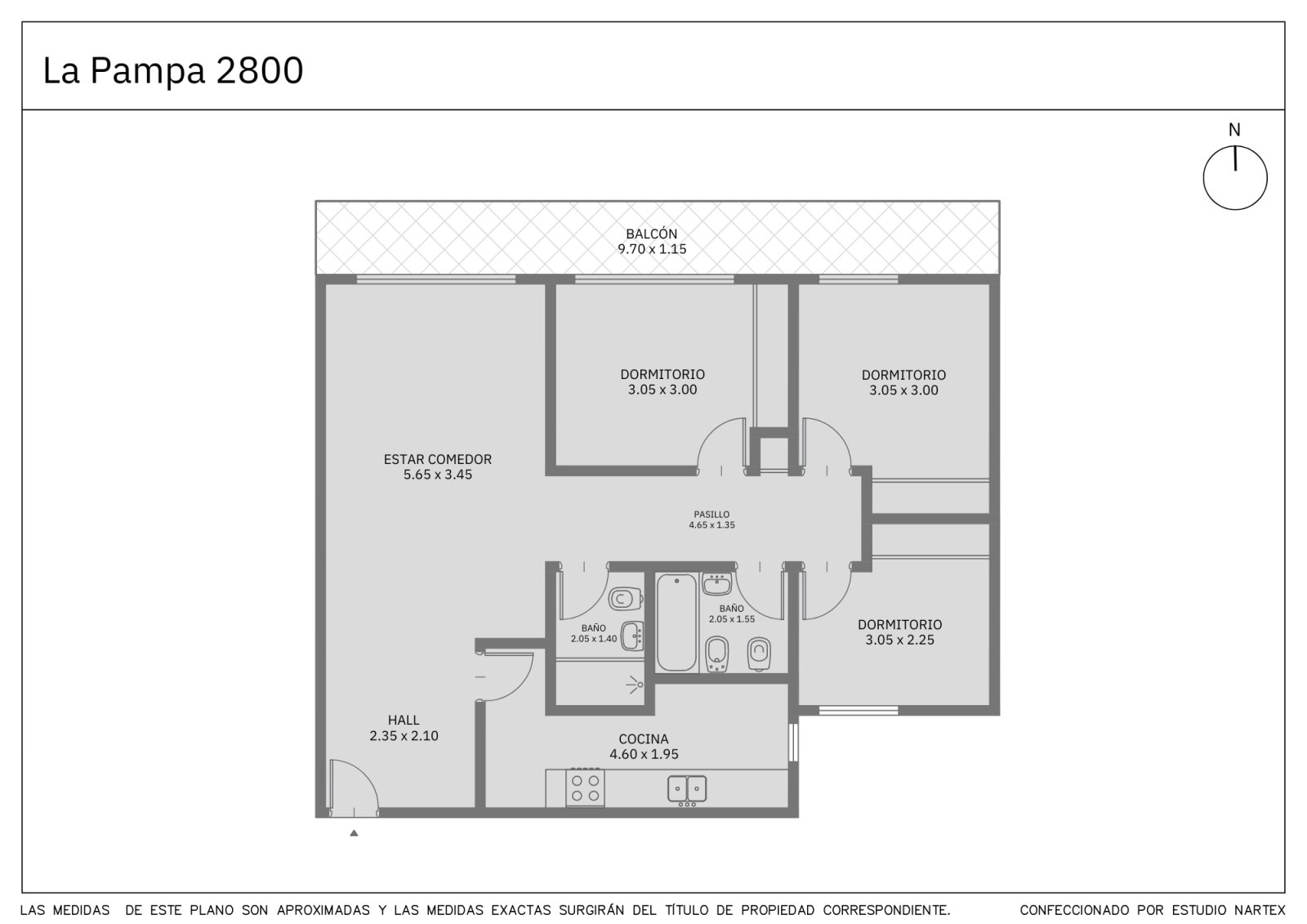 Living comedor con salida a balcón corrido, cocina separada con conexión para lavarropas/lavavajillas. Tres dormitorios con placard, uno con acceso al balcón. Dos baños completos. Aberturas con DVH, pisos vinílicos símil madera y porcelanatos en baños y cocina. Cocina a gas y horno a eléctrico, agua caliente por calefón. Muy luminoso, orientación norte. 88 m² totales. Expensas $240.000.