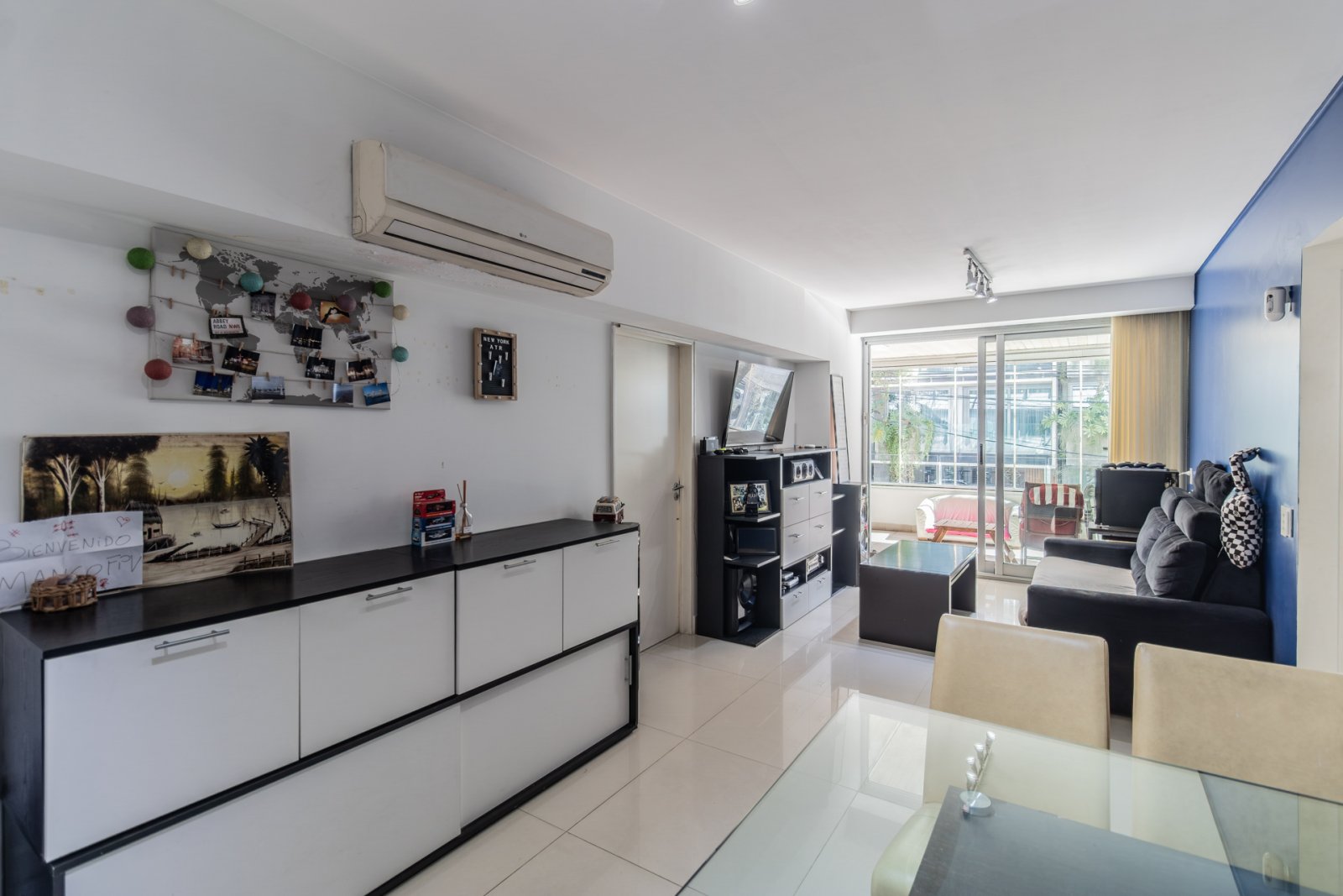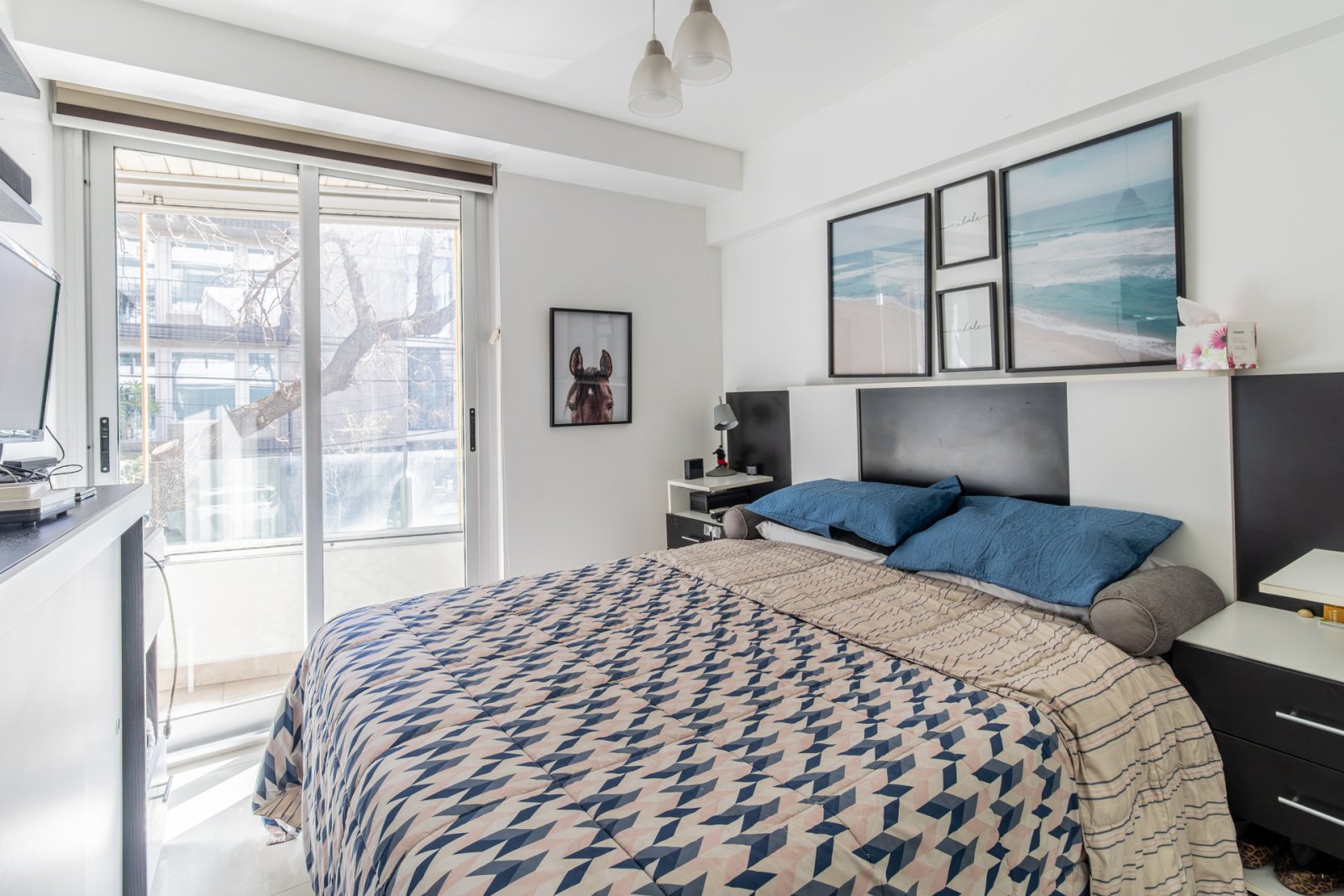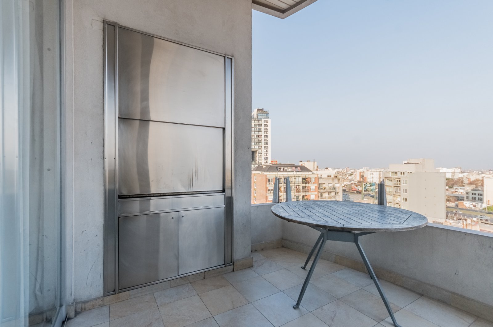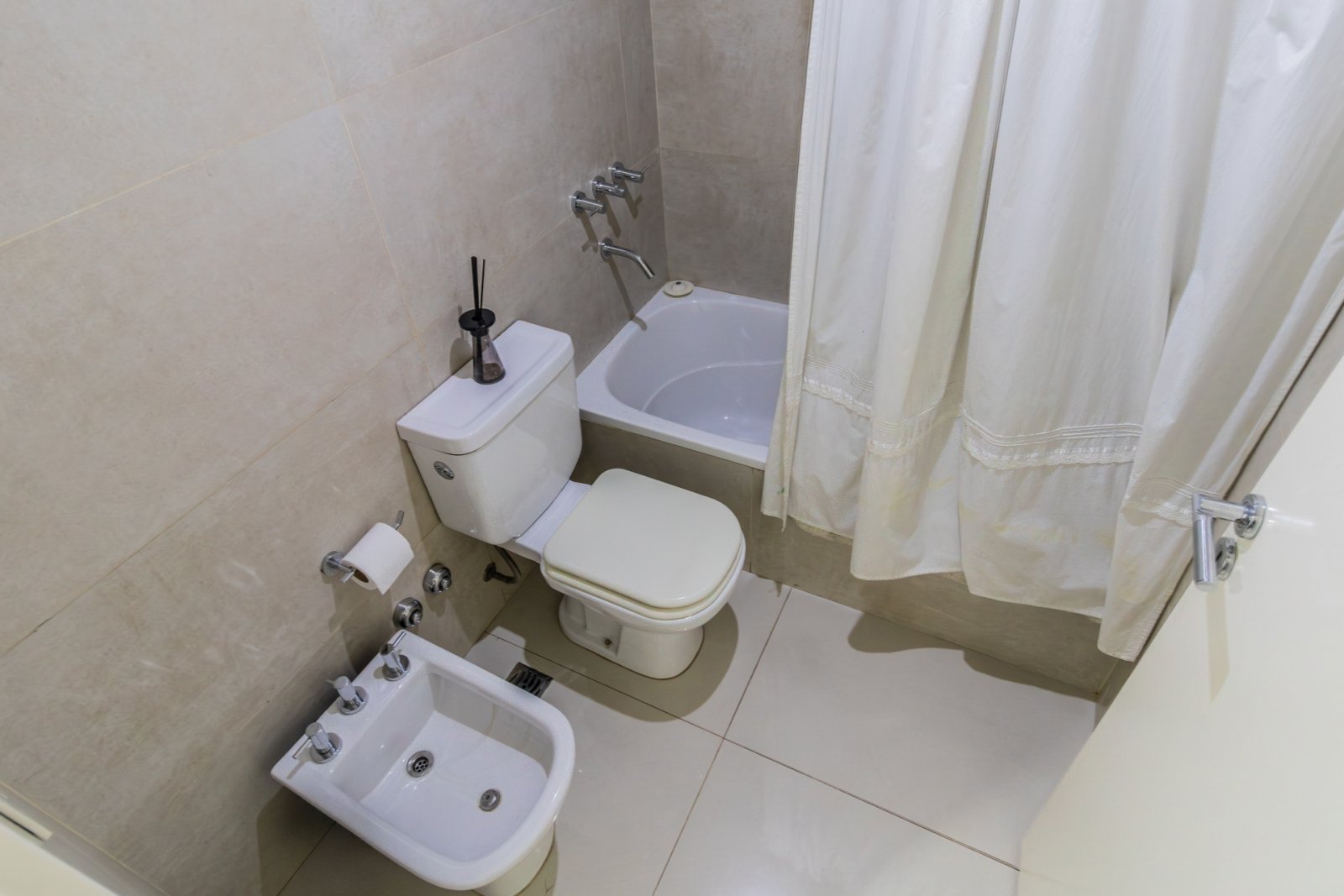 Departamento de 3 ambientes en venta. Dos dormitorios con placard, uno de ellos en suite. Baño completo adicional con antebaño. Amplio balcón al frente. Sistema de climatización frío-calor por aire. Agua caliente central. El espacio para el lavarropas en la cocina, actualmente se utiliza como lugar de guardado. Edificio con seguridad y amenities en los pisos superiores: pileta, fogonero, SUM, sauna, gimnasio.