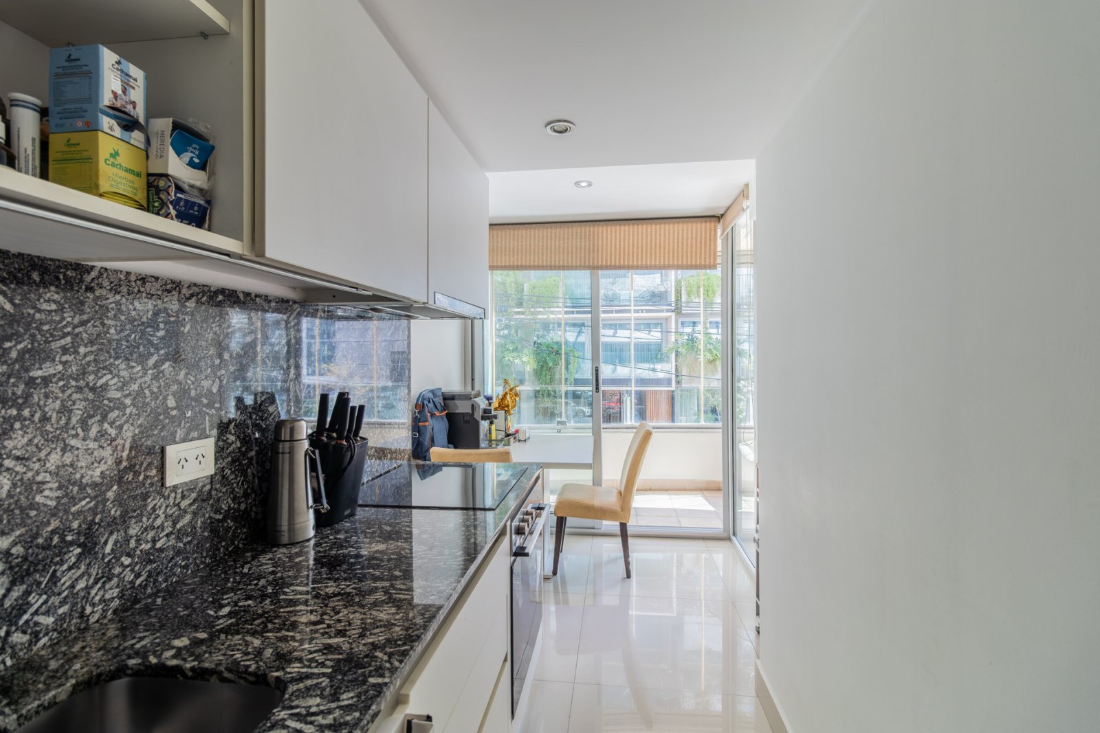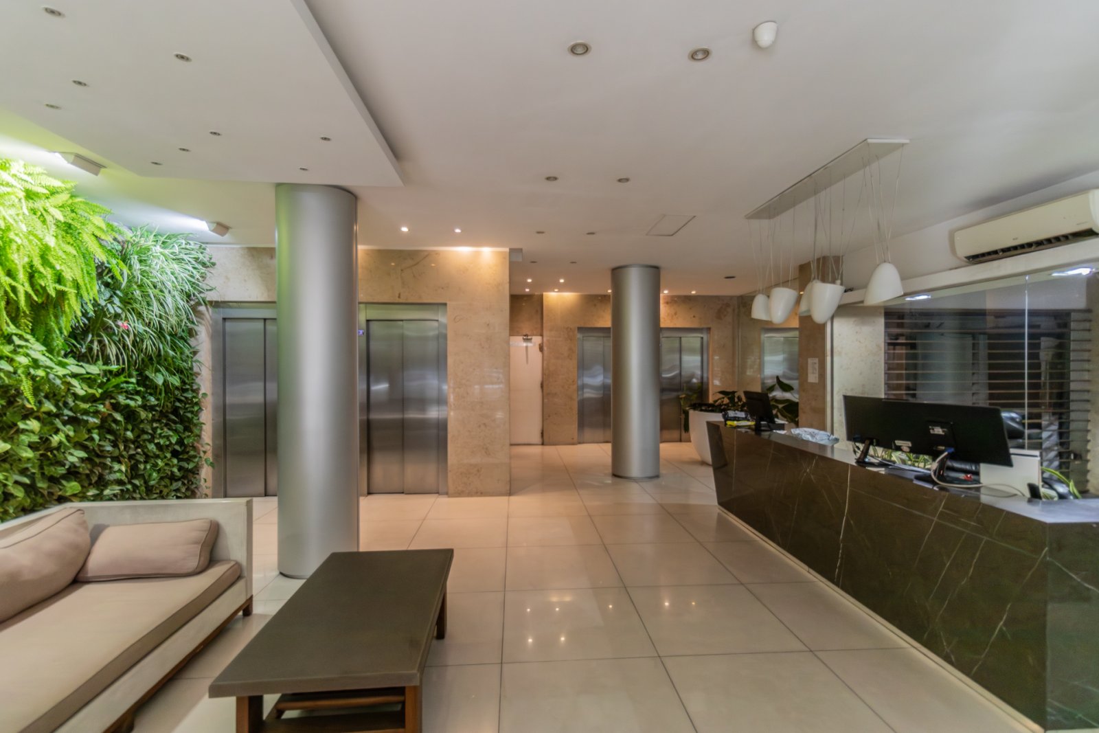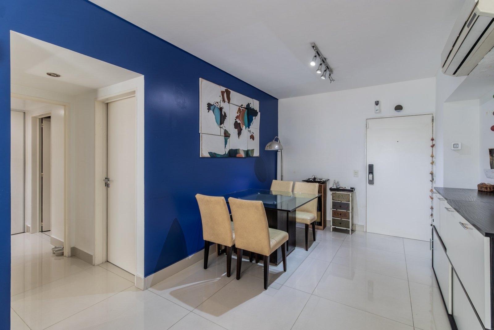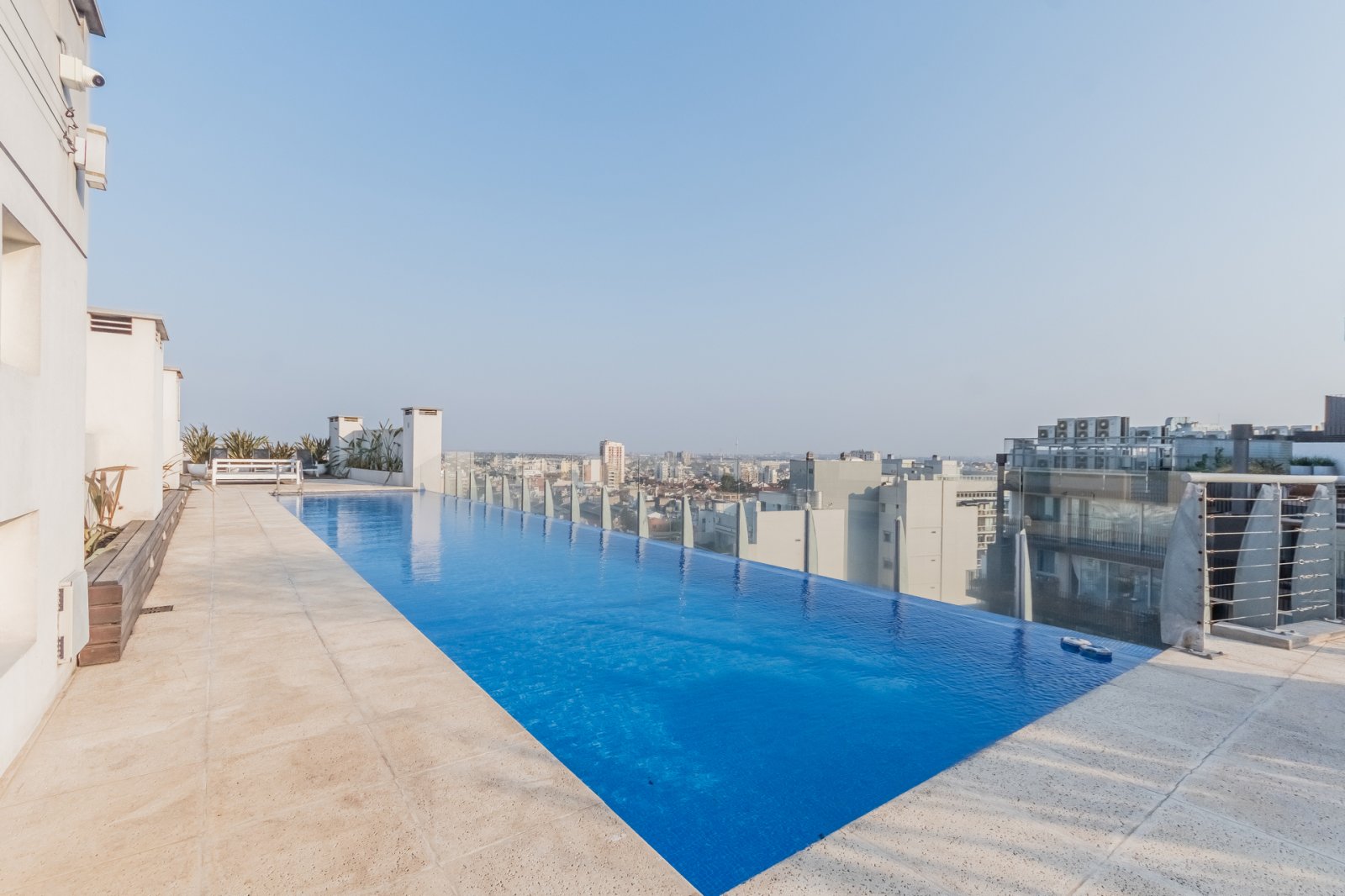 Departamento de 3 ambientes en venta. Dos dormitorios con placard, uno de ellos en suite. Baño completo adicional con antebaño. Amplio balcón al frente. Sistema de climatización frío-calor por aire. Agua caliente central. El espacio para el lavarropas en la cocina, actualmente se utiliza como lugar de guardado. Edificio con seguridad y amenities en los pisos superiores: pileta, fogonero, SUM, sauna, gimnasio.