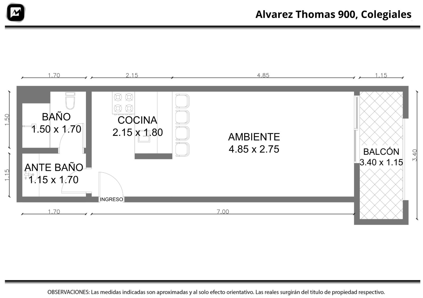 Características de la unidad: Ambiente amplio - Cocina integrada - Anafe a gas - Caldera - Calefacción por radiadores (control independiente) - Conexión para aire acondicionado - Conexión para lavarropas - Baño completo con antebaño.