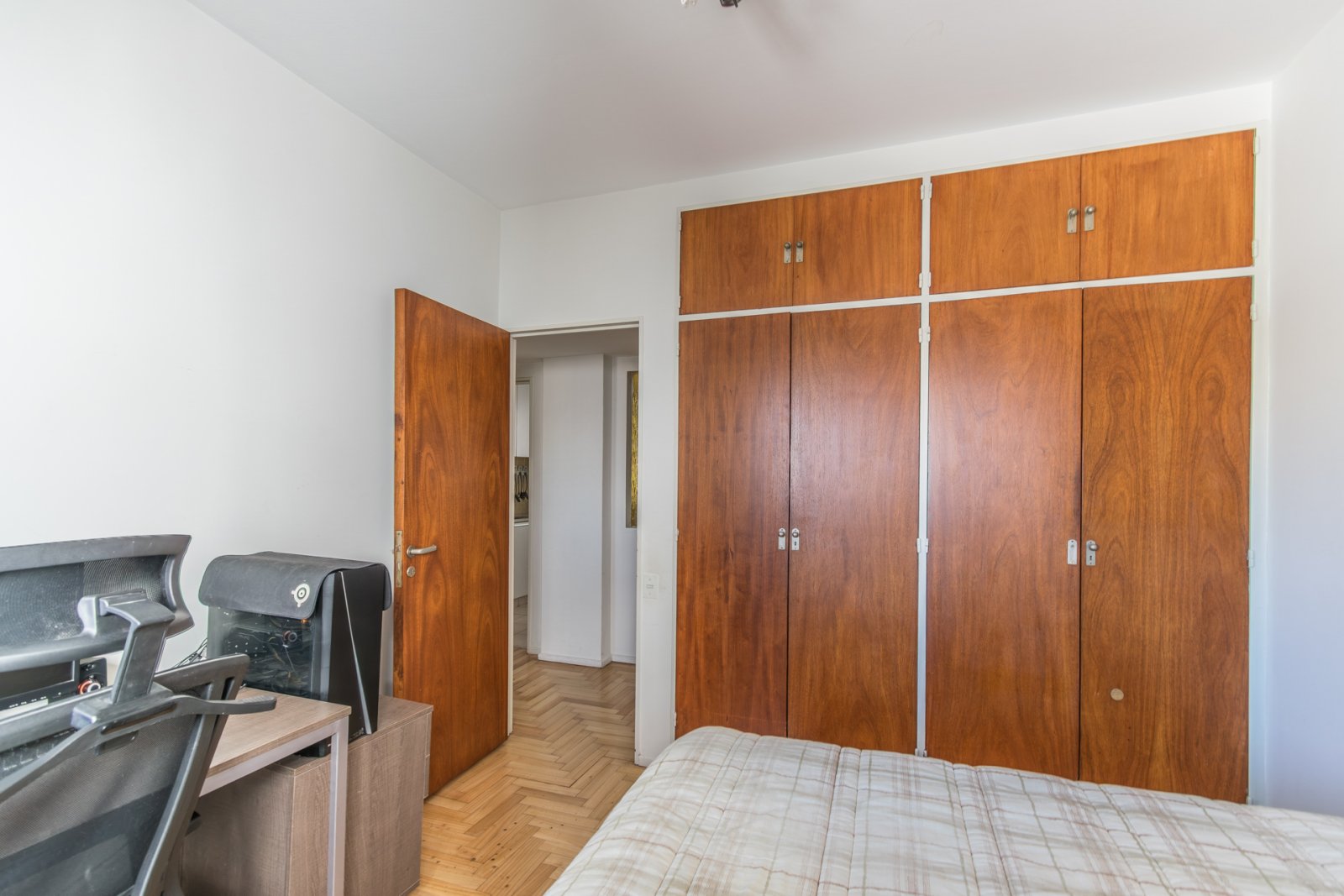 Venta de departamento de 3 ambientes. Cochera cubierta en Planta Baja. Disposición al contrafrente. Amplio living comedor con piso de parquet y salida al balcón. Dos dormitorios con placard empotrado: uno ventila hacia el contrafrente, y el otro al patio de aire y luz. Cocina con lavadero incluido. Toilete de recepción y baño completo con ventana al contrafrente. Agua caliente individual por calefón.
