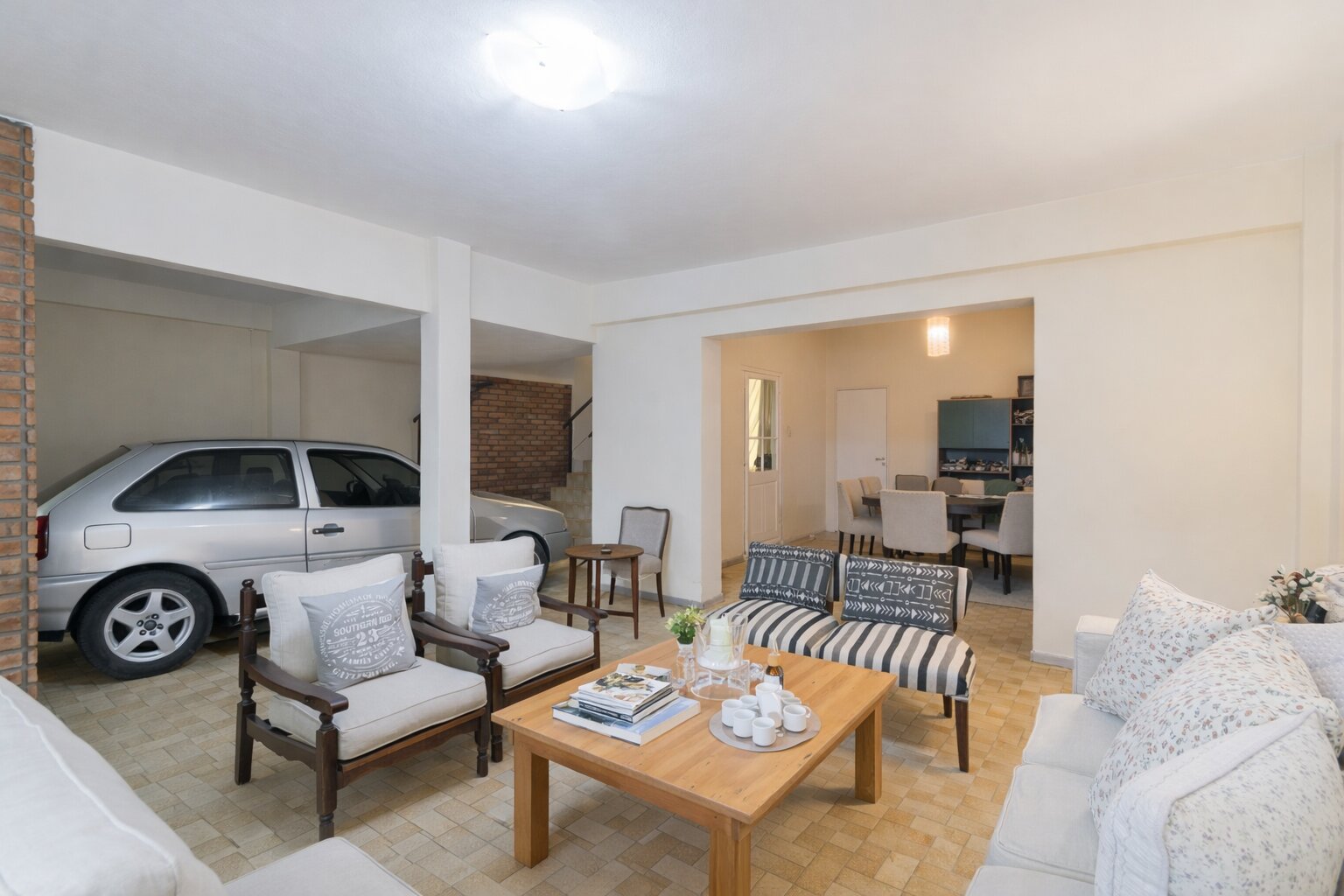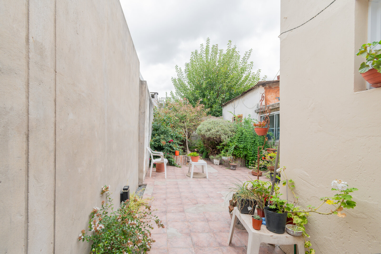 En planta baja cuenta con cochera, living, cocina-comedor, un dormitorio, baño completo y patio interno techado. Desde allí se accede a un patio con jardín de 36 m², con sol todo el día. Al fondo, un sector a medio terminar con lavadero, distribuidor, baño y habitación, ideal para ampliar, reciclar o generar más jardín.