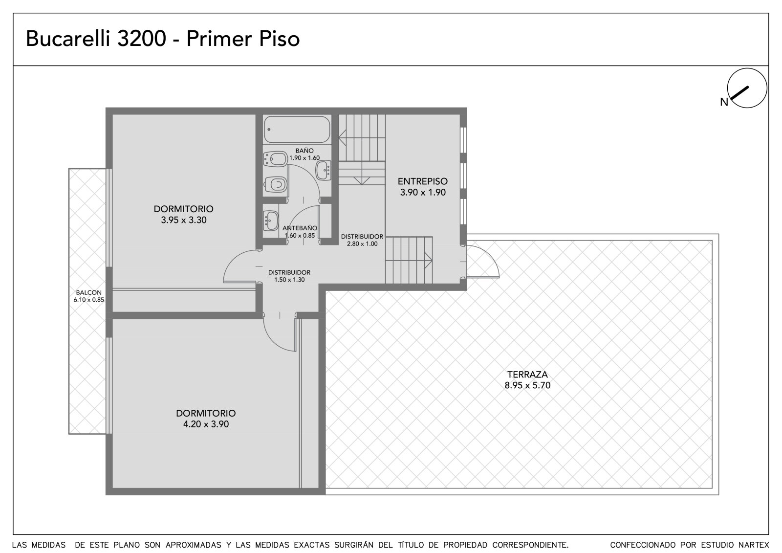 En planta alta hay dos dormitorios muy amplios con placares, ambos al frente con balcón (orientación noreste), baño completo y hall de distribución. Además, entrepiso ideal para estudio y gran terraza.