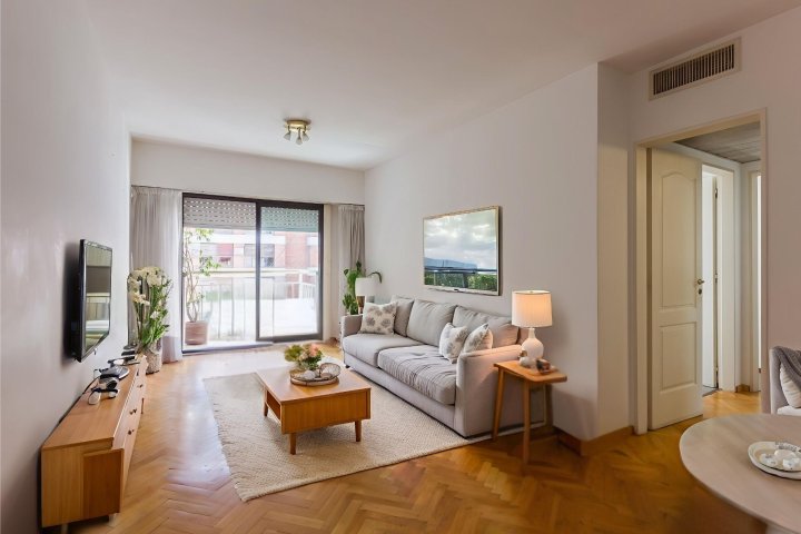 Boulevard Cerviño y Lafinur - Contrafrente luminoso y tranquilo. Monoambiente de 32 m² totales, ubicado al contrafrente con vista abierta y muy buena luz natural. El espacio cuenta con un desnivel que permite sectorizar el ambiente, generando una agradable división entre área de descanso y estar...