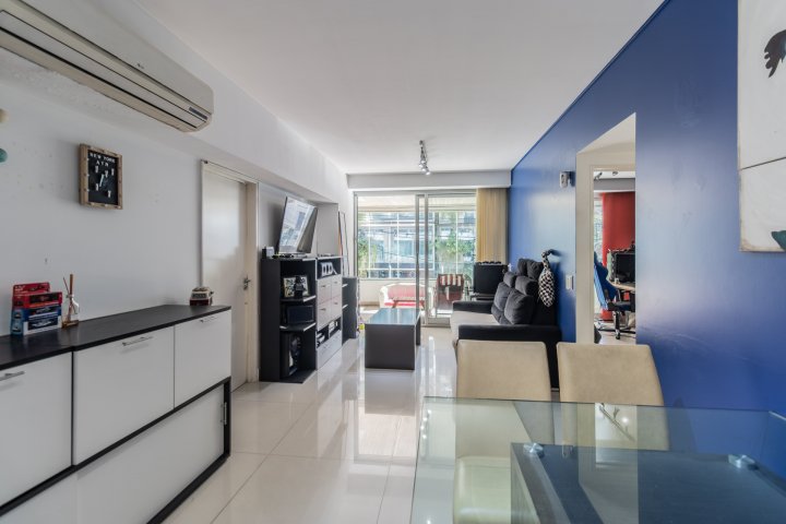 Departamento de 3 ambientes en venta. Dos dormitorios con placard, uno de ellos en suite. Baño completo adicional con antebaño. Amplio balcón al frente. Sistema de climatización frío-calor por aire. Agua caliente central. El espacio para el lavarropas en la cocina, actualmente se utiliza como lugar...