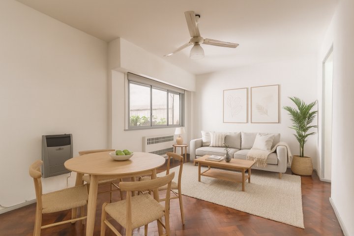 Departamento de dos ambientes al contrafrente. Tiene un patio interno con cubierta corrediza, integrado a la cocina. Un amplio dormitorio al contrafrente y un baño completo. Agua caliente central. Edificio apto profesional. Ubicado a metros de Av. Callao y a una cuadra de Av. Córdoba y de la estació...