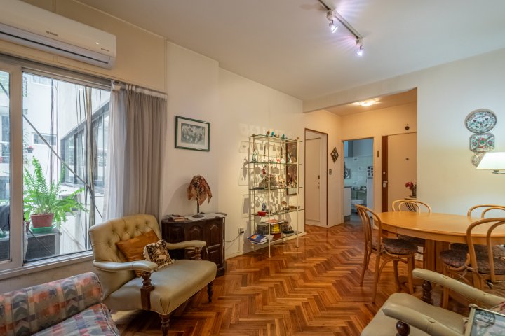 Departamento de dos ambientes al contrafrente. Tiene un patio interno con cubierta corrediza, integrado a la cocina. Un amplio dormitorio al contrafrente y un baño completo. Agua caliente central. Edificio apto profesional. Ubicado a metros de Av. Callao y a una cuadra de Av. Córdoba y de la estació...